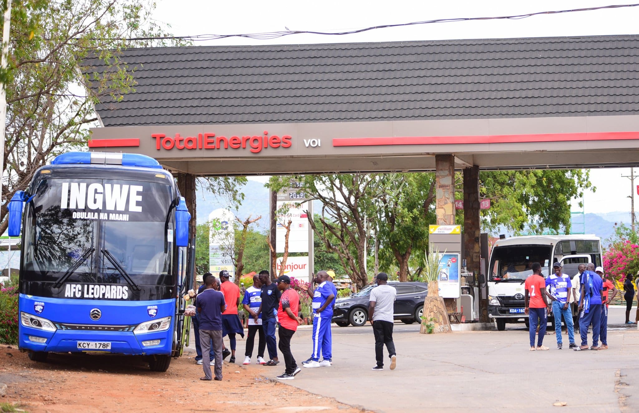 AFC Leopards fans arrive in colourful buses